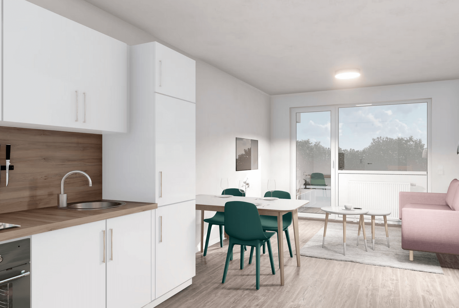 Jedes Apartment wurde mit größter Sorgfalt überarbeitet und bietet ein bis zwei Zimmer mit Wohnflächen zwischen 23 und 60 Quadratmetern. Die Wohneinheiten erhalten im Zuge des Umbaus brandneue Bäder mit modernen Annehmlichkeiten wie Handwaschbecken, WC-Anlagen und bodengleichen Duschen, ergänzt durch elegante, großformatige Fliesen. Die Küchen strahlen in neuem Glanz und sind ausgestattet mit Cerankochfeldern und Kühl-Gefrierkombinationen von deutschen Markenherstellern, sowie einer Spüle mit Chromarmatur und hochglänzenden, weißen Fronten an den Schränken.