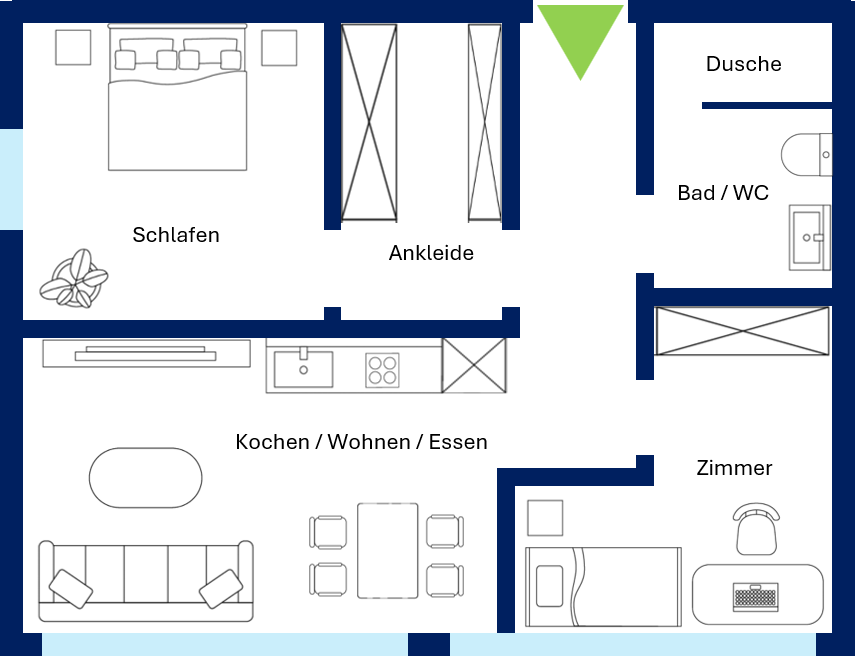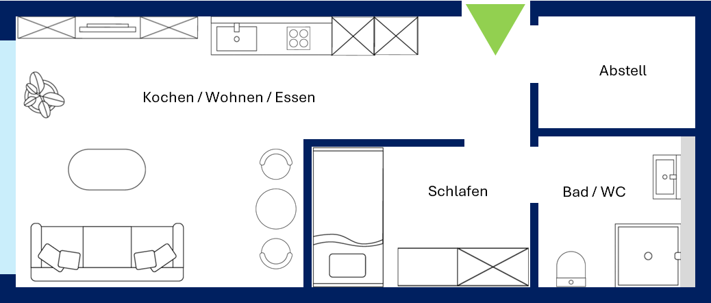 In jeder Wohnung befindet sich eine vollständig ausgestattete Einbauküche – inklusive aller wichtigen Elektrogeräte wie Cerankochfeld, Backofen, Spülmaschine, Kühlschrank und Dunstabzugshaube.